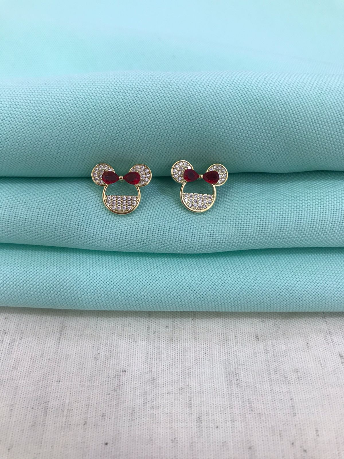 BRINCO MINNIE LAÇO ZIRCÔNIA BANHADO A OURO